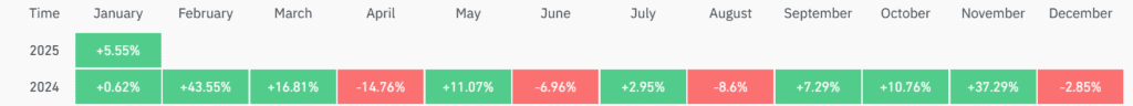 Em 2024, a valorização do Bitcoin não foi linear. Foram oito meses de alta e quatro de baixa, conforme o site Coinglass.