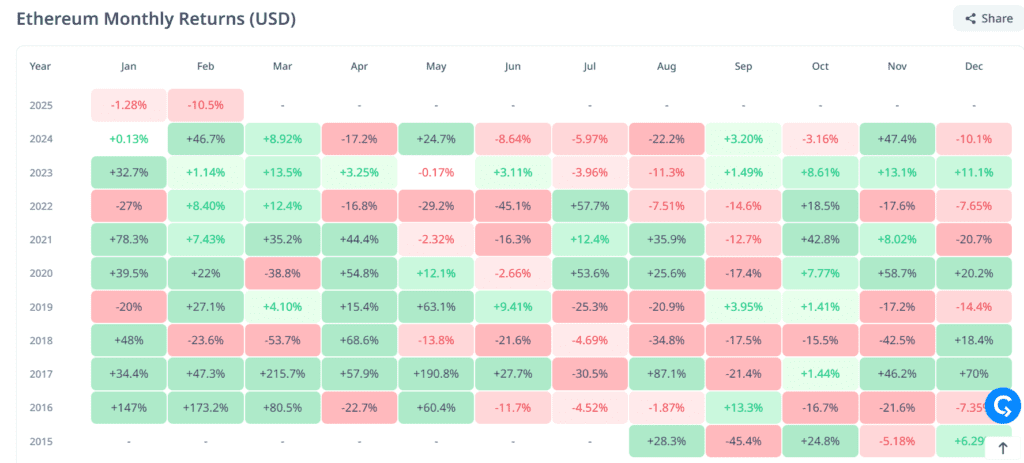 A lateralização do preço do ETH nos últimos meses, sem sinais claros de forte subida, influencia também o movimento de capital para as demais altcoins. Historicamente no ano seguinte ao halving do Bitcoin, o primeiro trimestre costumava ser de forte valorização para o Ethereum.
